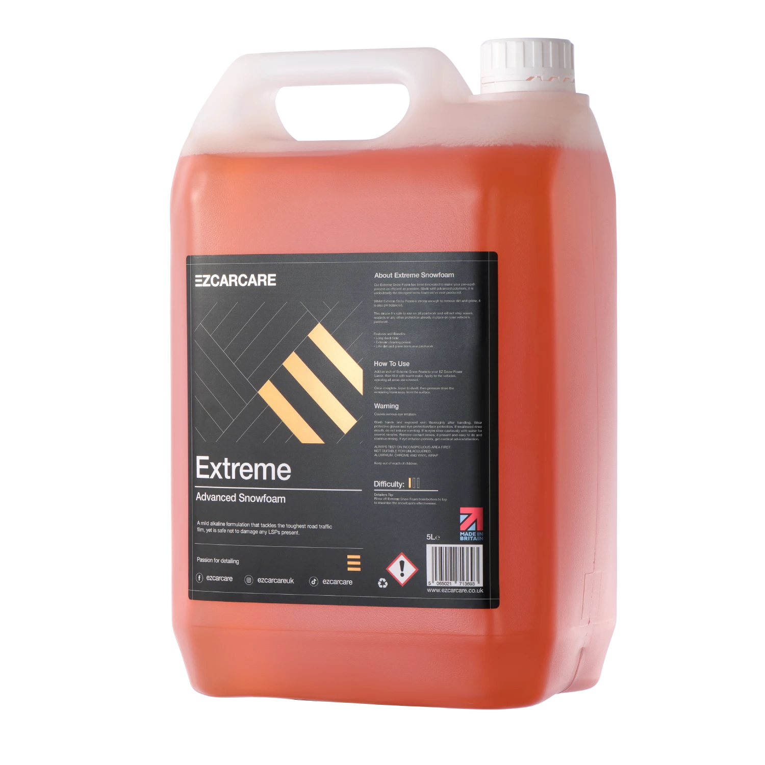 Extreme Snow Foam is a mild alkaline snow foam that can challenge the toughest of road traffic film whilst being gentle enough to not damage any LSP (Last Step Protection) present on the surface.