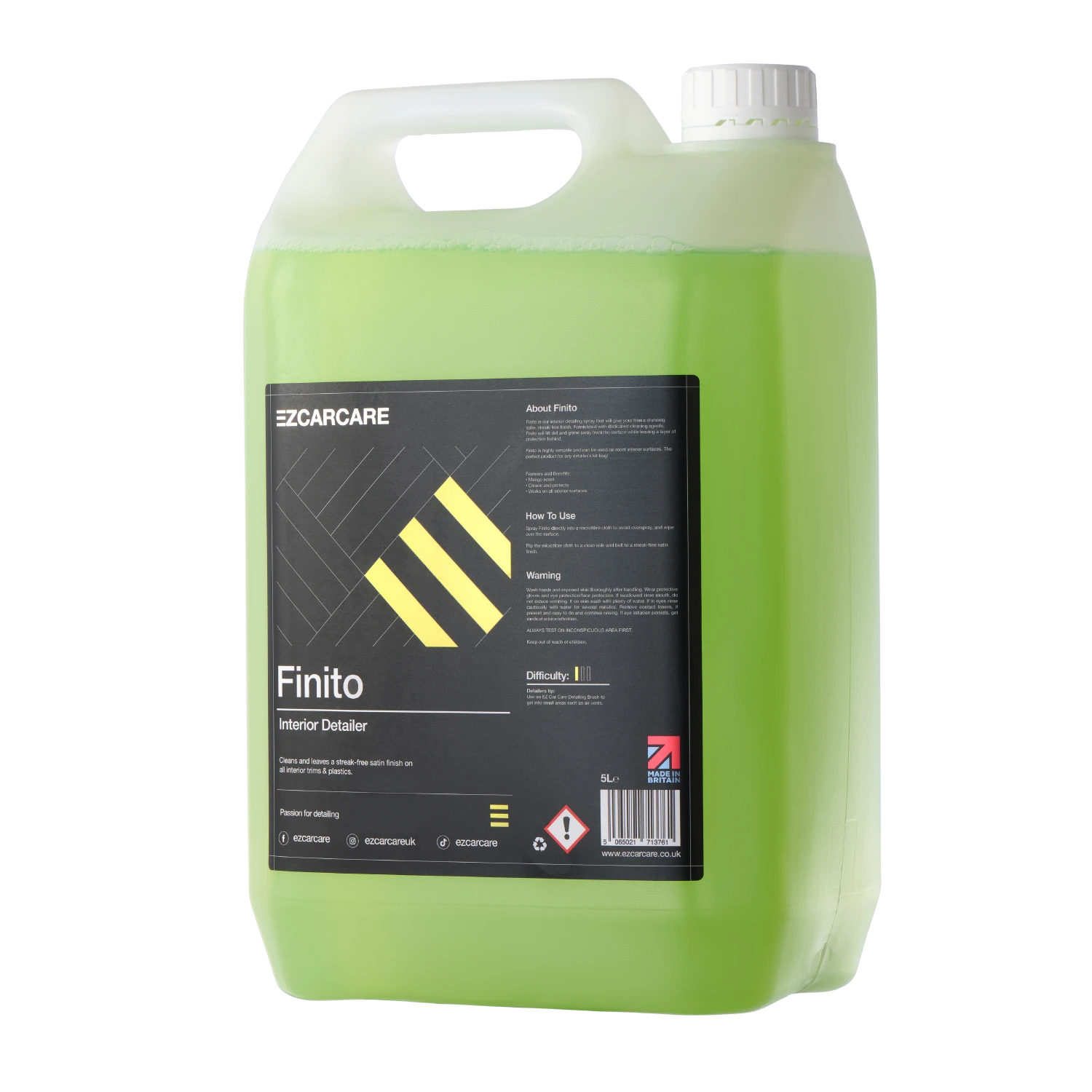 Finito is our interior detailing spray that will give your trim a stunning satin, streak free finish and leave it both looking and smelling great! Finito lifts dirt and grime away from any surface while also leaving a layer of protection.